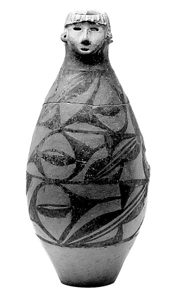 人頭形器口彩陶瓶,仰韶文化,一九七三年大地灣遺址出土。圖片選自《國寶中的黃河文明》
