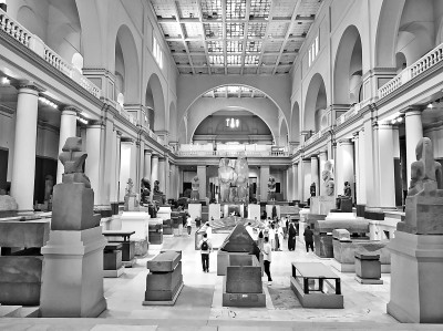 坐落在解放廣場(chǎng)西北角的埃及博物館,是埃及國(guó)家博物館的簡(jiǎn)稱,這幢古樸典雅的二層暗紅色磚體建筑,收藏了大約15萬(wàn)件與古埃及文化相關(guān)的珍貴寶藏。這里有巨大的神像、歷代國(guó)王的石像、栩栩如生的木乃伊和龐大的棺槨,有幾千年前的陶器、石器和繪畫、雕塑,還有記載古埃及科學(xué)、文學(xué)、藝術(shù)、歷史、法律和社會(huì)生活等方方面面的紙莎草文獻(xiàn)等,內(nèi)容包羅萬(wàn)象。