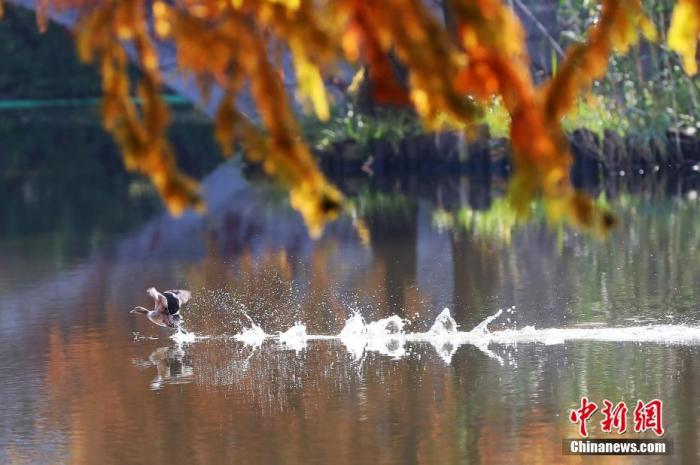 資料圖:南京燕雀湖景致。燕雀湖位于南京紫金山梅花谷南側(cè),種植大量落羽杉、池杉、水杉等色葉樹種,每到初冬時節(jié),湖畔風(fēng)景如畫。 中新社記者 泱波 攝