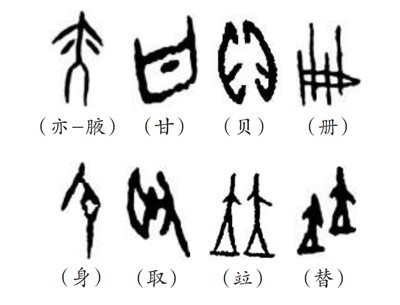 “象形者,畫成其物,隨體詰詘”(《說文·敘》),是根據(jù)客觀物象的形態(tài)輪廓來構成文字符號的方法。象形字又稱作“文”,“文者,物象之本”。如“貝”就是一個海貝的象形,也指貨幣;“冊”,就是由竹簡編起來的簡冊的象形;“身”為妊娠的形象,突出腹部。