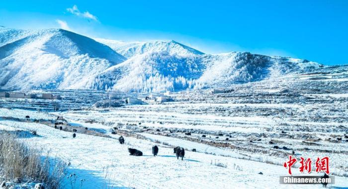 資料圖:初冬時(shí)節(jié),蘭州市榆中縣馬坡鄉(xiāng)迎來(lái)降雪,一場(chǎng)冬雪過(guò)后,村莊田野沐浴在雪景中,藍(lán)天白雪下,似童話(huà)世界。張學(xué)江 攝