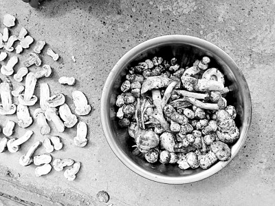 在縣城唯一的山珍市場內(nèi),專營蘑菇的個(gè)體戶不急不躁地守著攤位,面前是一堆堆清早收購來的散發(fā)著泥土芬芳的各色蘑菇……專程趕來的當(dāng)?shù)厥晨突蚺紶柭愤^的外地游客,看著如此新鮮的蘑菇,都會買上個(gè)十斤八斤,回去后用保鮮袋分裝在冰箱里隨吃隨拿,或者曬成干蘑菇吃得長久些。個(gè)頭大的切成薄片,晾曬在水泥地上;個(gè)頭小的用線串成串兒,掛在太陽下暴曬,幾天就好——若遇到陰天,也可以掛在爐火上熏烤。干蘑菇把山野里的芳香氣息集于一身,可謂一種脫俗的山珍野味,無論用來招待客人,還是捎帶給遠(yuǎn)方的親友,都是非常不錯(cuò)的選擇。