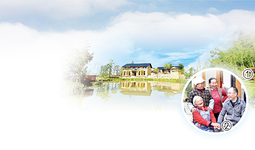 圖①為九坪村民宿風(fēng)光。   圖②為梁宇(右一)和鄉(xiāng)親們?cè)谝黄稹?nbsp;  圖片均為巫溪縣紅池壩鎮(zhèn)黨委供圖