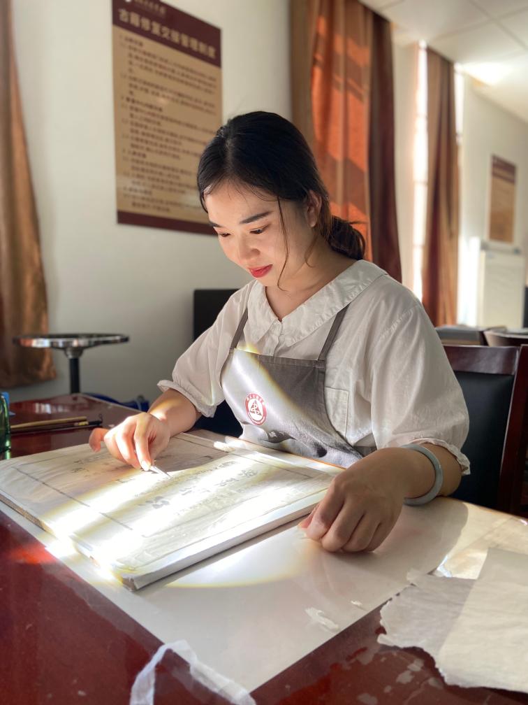 新華社合肥10月6日電(記者劉美子)清晨的陽光透過層疊的梧桐葉,灑落在有著百年歷史的安徽省圖書館建筑上,在這里,古籍修復(fù)師耿寧開始了一天的工作。她小心翼翼地揭起一張“傷痕累累”的待修書葉,對著光仔細(xì)查看,選配補書的紙張。這是古籍修復(fù)的重要一環(huán),耿寧絲毫不敢怠慢。
