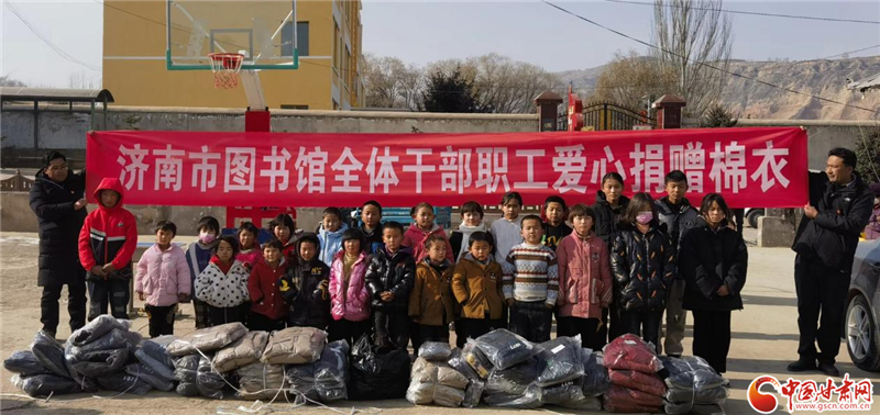 濟(jì)南市圖書館為積石山縣滿陳家村小學(xué)捐獻(xiàn)愛心棉衣