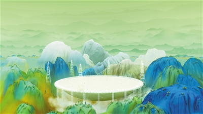 數(shù)字技術(shù)的賦能,進(jìn)一步打開青綠山水創(chuàng)作空間。在黨的二十大勝利召開之際,人民日報(bào)社新媒體中心在全網(wǎng)上線創(chuàng)意動(dòng)畫視頻《新千里江山圖》,數(shù)字技術(shù)與中華優(yōu)秀傳統(tǒng)文化元素相結(jié)合,輔以青綠色彩,鋪展一幅新時(shí)代的“千里江山圖”,生動(dòng)講述中國故事。還有一些創(chuàng)作者以“藝術(shù)+科技”思維,用數(shù)字藝術(shù)重新演繹青綠山水之美。比如藝術(shù)家靳軍的個(gè)人展覽“數(shù)境等觀”,便呈現(xiàn)了他近年來以數(shù)字藝術(shù)“轉(zhuǎn)譯”傳統(tǒng)圖像和意境的多組作品。光影流轉(zhuǎn)中,觀眾得以沉浸式體驗(yàn)青綠之美。