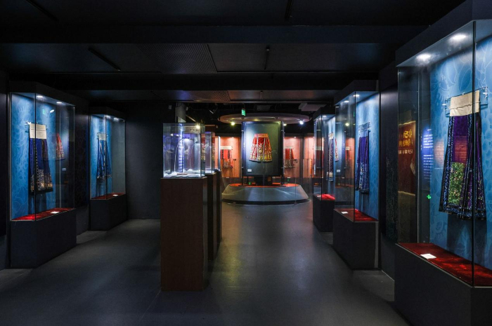 “衣生萬物 傳統(tǒng)重構(gòu)——五色華彩馬面裙”展覽探尋和呈現(xiàn)馬面裙的歷史以及中國古人的制衣智慧與美學(xué)風(fēng)尚,近百條傳統(tǒng)馬面裙實(shí)物及多件當(dāng)代創(chuàng)新設(shè)計(jì)將持續(xù)展出至7月18日。展覽運(yùn)用了“五行五色”中國傳統(tǒng)色彩觀念,將展區(qū)分為赤、藍(lán)、黃、白、黑五個(gè)正色板塊,以及綠和多彩(月華裙)等間色板塊。在展示方式上,傳統(tǒng)馬面裙以平面展示為主,當(dāng)代創(chuàng)新設(shè)計(jì)的馬面裙則以人臺(tái)的立體展示為主。