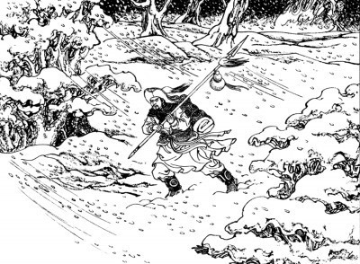 《水滸傳》用豐富細(xì)節(jié)塑造了一個有血有肉的林沖形象。圖片選自連環(huán)畫《水滸傳·風(fēng)雪山神廟》。資料圖片
