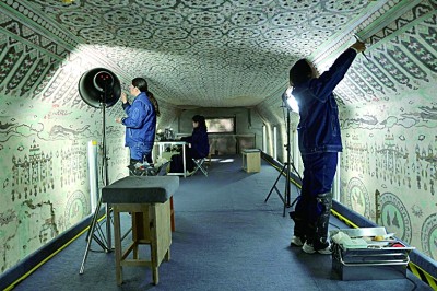 在莫高窟第341窟內(nèi),敦煌研究院文物數(shù)字化研究所的90后女孩兒吳紹俠與同事們一起對(duì)壁畫進(jìn)行數(shù)字化采集。談起自己的工作,她滿是自豪:“我們應(yīng)用數(shù)字化技術(shù)留給后世相對(duì)完整的石窟壁畫影像,使藝術(shù)珍品從洞窟走向大眾,也讓全世界更多人了解到中華優(yōu)秀傳統(tǒng)文化的魅力。”
