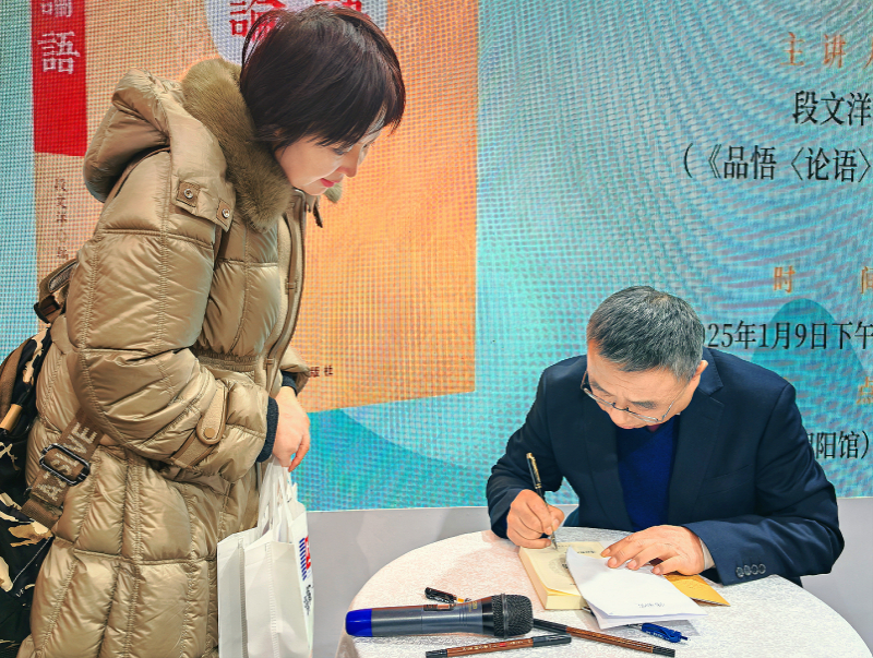 《品悟〈論語〉》一書作者段文洋在活動(dòng)現(xiàn)場(chǎng)為讀者簽名