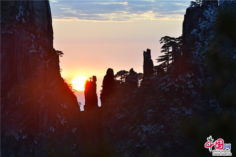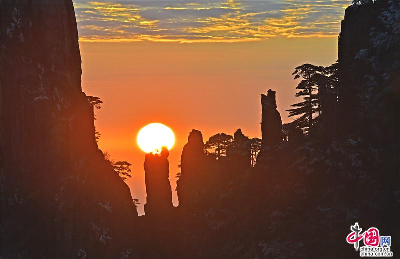 【點睛】新年伊始,黃山風景區(qū)迎接今年的第一縷陽光,在一片歡呼聲中太陽跳出了地平線來到了黃山之巔。