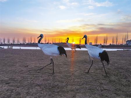 冬日的張掖國(guó)家濕地公園丹頂鶴、黑天鵝、朗德鵝、斑頭雁等沐浴在清晨的陽(yáng)光下。這里良好的生態(tài)環(huán)境吸引了眾多候鳥(niǎo)棲息。通訊員 成 林