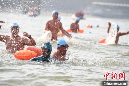 圖為活動現場冬泳愛好者表演“漂游”?!钇G敏 攝
