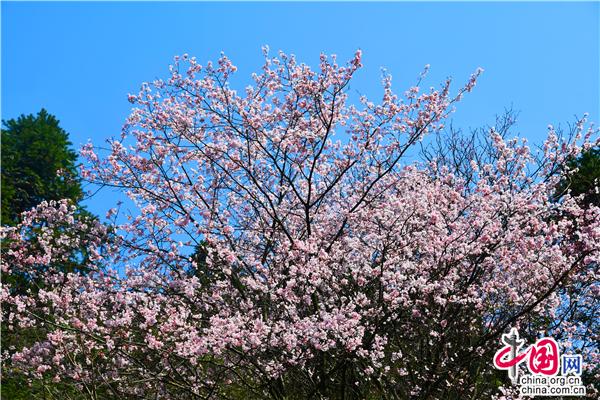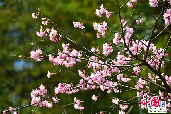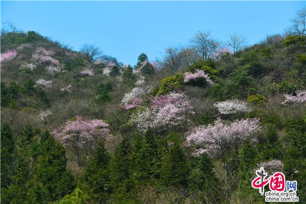 【點睛】沿著蜿蜒的旅游公路,兩旁海拔600多米的山坡上開滿了櫻花,一簇簇櫻花投印在蒼翠山麓與柳綠間,潔白的、粉色的、玫紅的花朵,迎風搖曳,儼然一副七彩水墨畫。