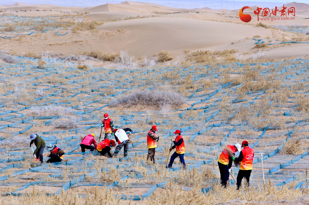當(dāng)日,張掖市臨澤縣市民來(lái)到平川鎮(zhèn)一治沙區(qū)義務(wù)壓沙障、栽梭梭,拉開(kāi)了造林3.64萬(wàn)畝、防沙治沙3萬(wàn)畝年度改善生態(tài)環(huán)境“接力賽”的帷幕。
