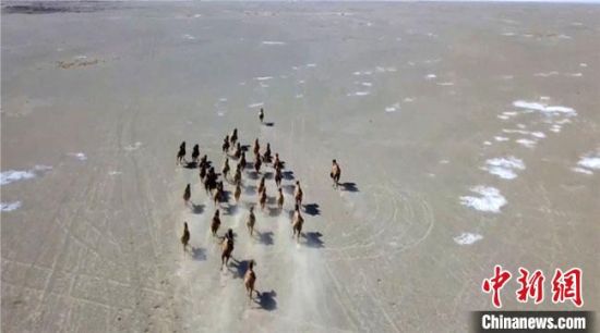 3月初,設(shè)于敦煌西湖國家級自然保護(hù)區(qū)的紅外相機(jī),拍攝到了大群野駱駝的視頻和照片?!《鼗臀骱壹壸匀槐Wo(hù)區(qū)管理局供圖