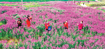 安徽六安市民在做好防護的基礎(chǔ)上,自駕車輛,來到獨山鎮(zhèn)抹茶特色小鎮(zhèn),觀花賞景。 陳力 攝