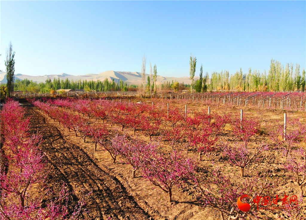 近日,位于鳴沙山下的甘肅省敦煌市七里鎮(zhèn)的5000余畝桃花競(jìng)相綻放,芬芳爭(zhēng)艷,分外迷人。目前,桃產(chǎn)業(yè)已成為該鎮(zhèn)富民強(qiáng)鎮(zhèn)的主導(dǎo)產(chǎn)業(yè)之一。