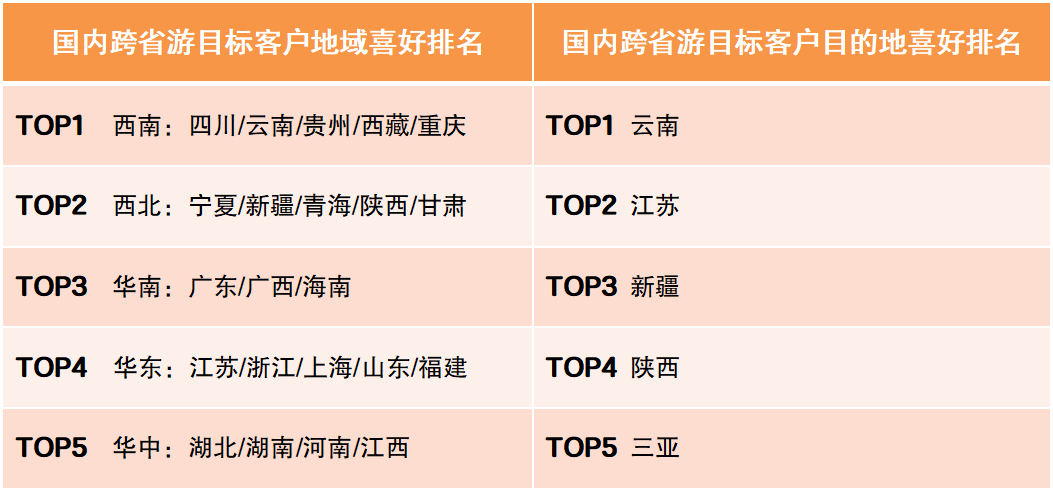 國內(nèi)跨省游目標(biāo)客戶消費(fèi)偏好