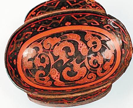 這一時期漆器上的幾何紋畫,主要有菱形紋、三角紋、圓圈紋、平行線紋等。如武威磨嘴子4號漢墓出土的漆缽,其腹、底部交接處繪二方連續(xù)菱格紋,菱格內填圓圈紋和渦漩紋,口內次要部位則繪幾何平行線紋。