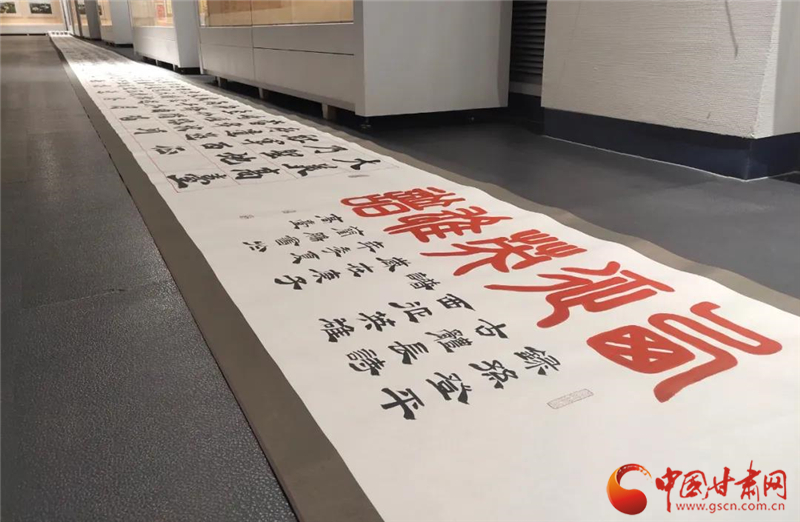 中國甘肅網(wǎng)8月23日訊 (本網(wǎng)記者 張?zhí)m琴)為了“講好西路軍的故事,傳承好紅色基因”,銘記革命英烈的英雄事跡和英勇獻(xiàn)身的革命精神。近日,張掖高臺縣展開了形式多樣的主題活動,其中在紅色主題文藝精品展上,書法作品百米長卷《西征英雄譜》再現(xiàn)了紅西路軍將士不畏艱險、浴血奮戰(zhàn)的悲壯歷史場景受到好評。