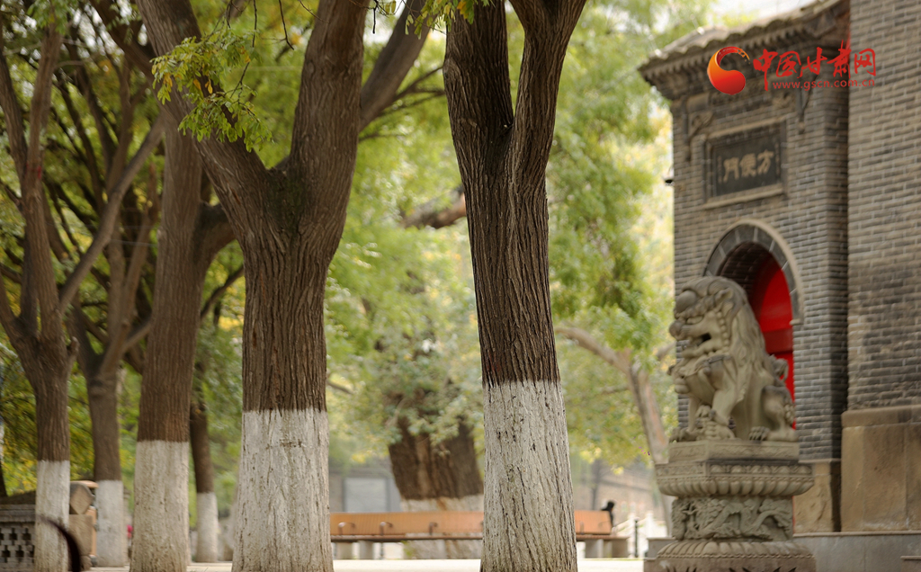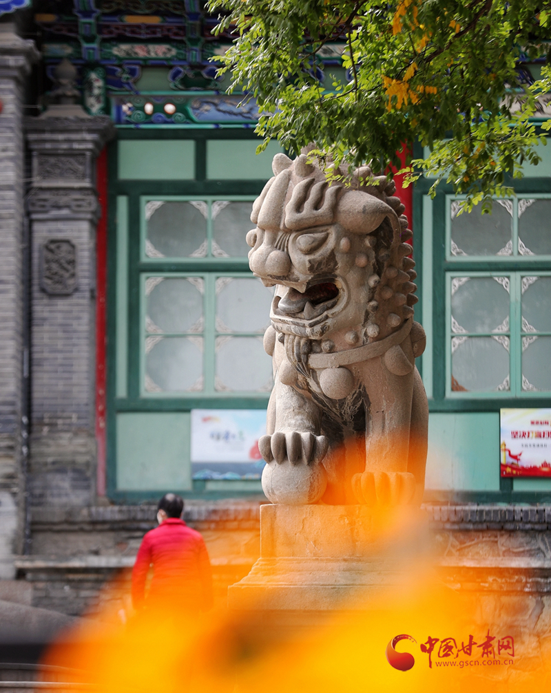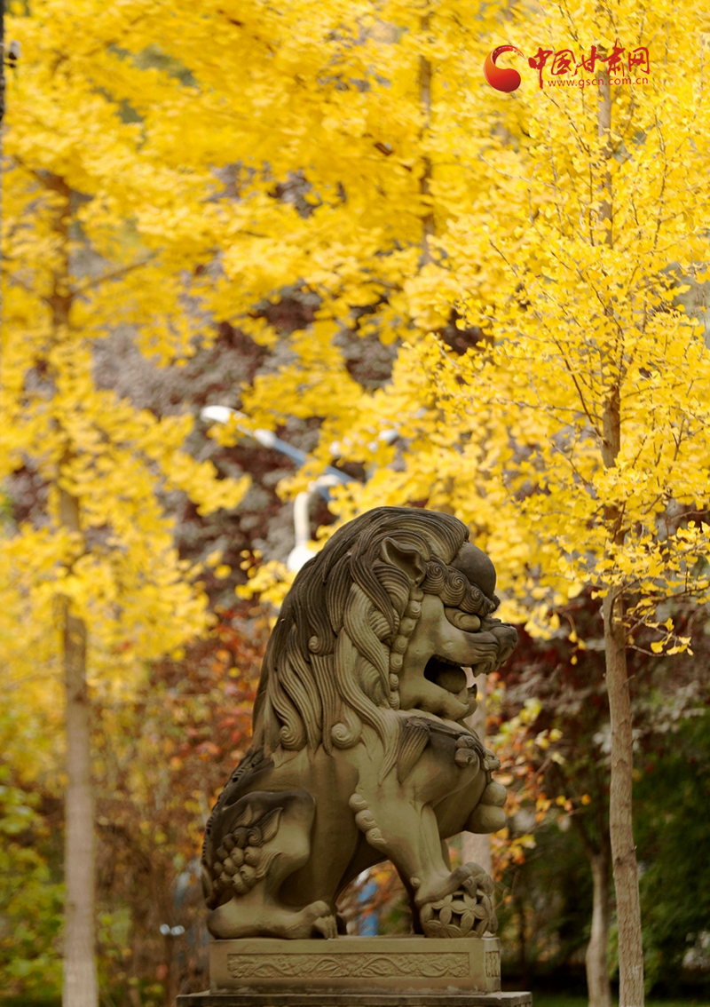 一片黃葉帶來秋的訊息,一片銀杏林則映襯一尊石獅子的美好時(shí)光,在五泉山,隨著深秋到來,銀杏泛黃,莊嚴(yán)的石獅與金黃的銀杏林產(chǎn)生了巧妙融合。在銀杏泛黃的時(shí)光里,石獅的威嚴(yán)中多了幾分恬靜。