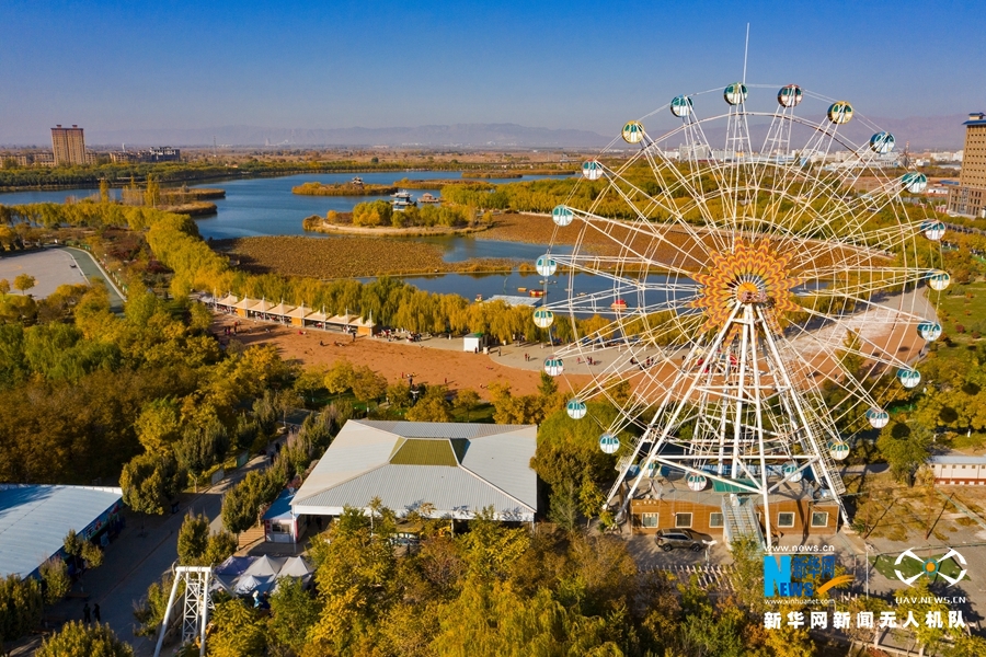深秋時(shí)節(jié),國(guó)家4A級(jí)景區(qū)甘肅省張掖潤(rùn)泉湖公園秋水依依,草木金黃,呈現(xiàn)出一幅斑斕畫卷。新華網(wǎng)發(fā)(成林 攝)