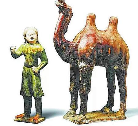 因彩而得名的“唐三彩”主要顏色有黃、綠、白、藍(lán),還有褐、赭、黑等,“三”更多指的是泛指,意為多彩。馬和駱駝是唐三彩中較為典型的器型。