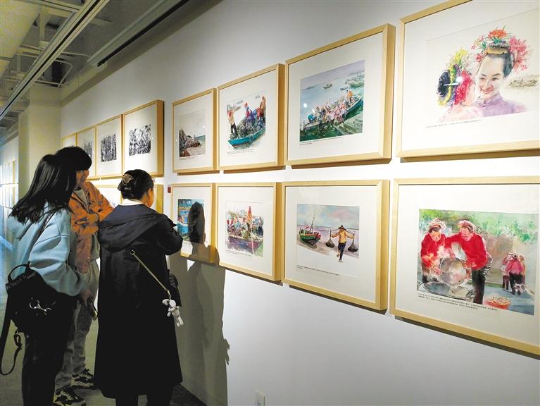 連環(huán)畫藝術(shù)家用手中的筆將紅旗渠自力更生、艱苦創(chuàng)業(yè)、無私奉獻的精神娓娓道來;一張畫紙,多圖呈現(xiàn)出我國鐵路日新月異的變化……在廣袤的祖國大地上,從來不缺多彩的中國故事。市民吳女士帶孩子前來觀展,在這些畫作前,她循著連環(huán)畫的注釋說明為孩子講述故事脈絡(luò),她認為,“架上連環(huán)畫”有畫面,有故事,有文字,容易讓孩子理解作品內(nèi)容??梢哉f“架上連環(huán)畫”是對傳統(tǒng)連環(huán)畫在藝術(shù)語言和表現(xiàn)形式上的革新。