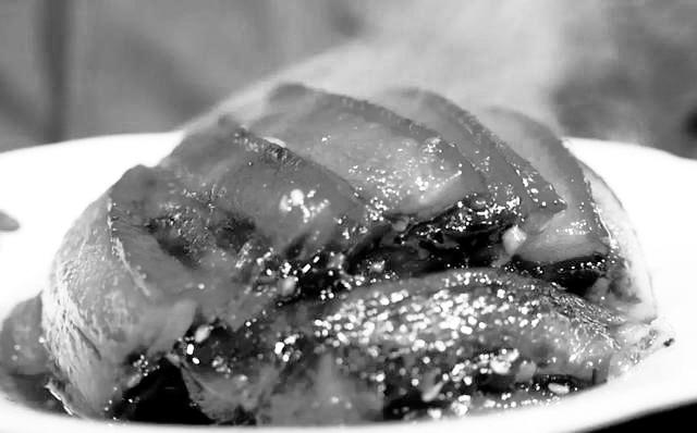 用青泥黑豬制作的紅燒肉并不像南方的菜系那樣注重糖色,在燒制過程中也沒有填入許多祛腥的調(diào)料,讓青泥黑豬特有的香味自己發(fā)散出來,在口齒間縈繞不絕,這道菜火候也相當(dāng)好,入口即化,那種“熔融”的快感讓味蕾瞬間綻放。