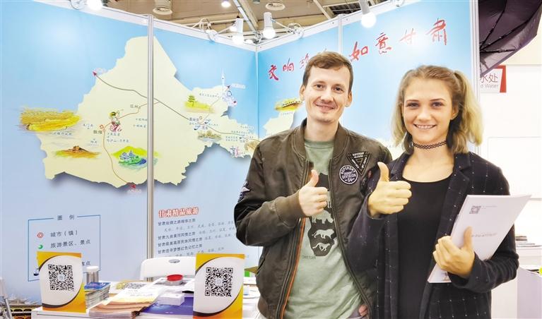 南非的凱拉和德國的托馬斯在蘇州工作,他們結伴來到甘肅展廳,和展廳的工作人員熱情交流。“我去過劉家峽的炳靈寺,感受過甘南的大草原,也欣賞過蘭州的黃河夜景,但由于旅行時間限制,沒能去敦煌看一看,有機會我還會去甘肅旅游。”