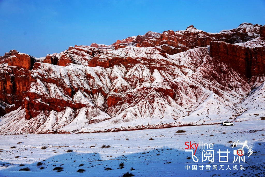 12月9日,甘肅省張掖市臨澤縣板橋鎮(zhèn)紅溝丹霞景區(qū),雪后初晴,丹霞披紗,更顯赤艷,成為冬日的一道靚麗風景。