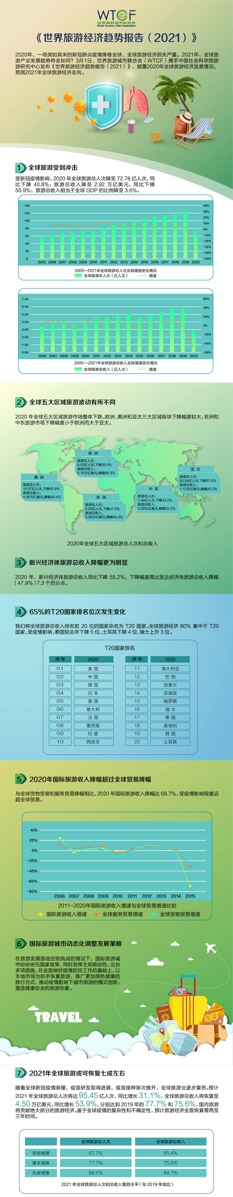 2020年是極不平凡的一年,新冠肺炎疫情席卷全球。作為以人的移動和交流為特征的旅游業(yè),受疫情影響尤為顯著。大多數(shù)國家和地區(qū)出臺旅行禁令,全球旅游業(yè)在消費需求、旅游投資、區(qū)域格局、產業(yè)鏈條、企業(yè)生存、人員就業(yè)等方面遭受諸多挑戰(zhàn)。