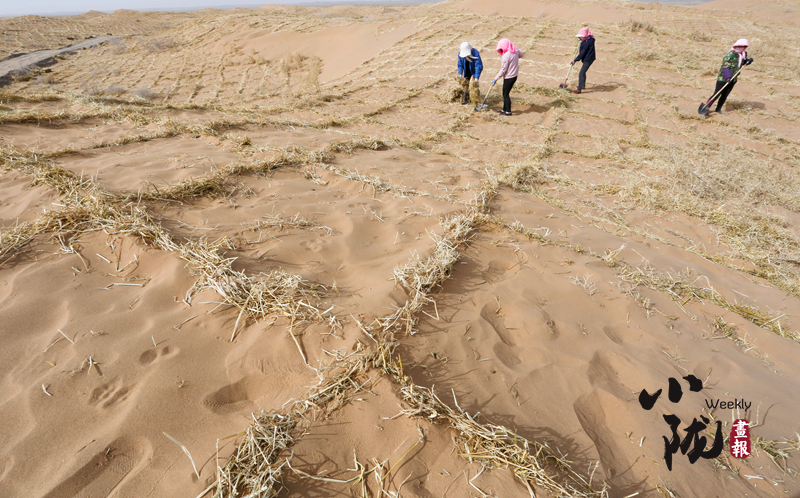 棉花稈、芨芨草、砂礫石、尼龍網(wǎng)、土工編制袋、粘土沙障、化學固沙等治沙新技術提高了治理效率。