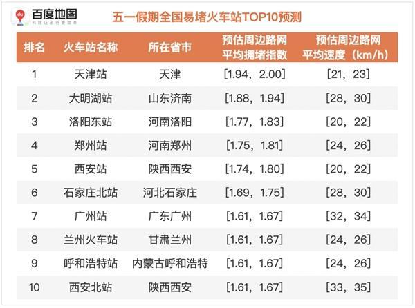 除高速車流量明顯攀升外,全國各地的客運交通樞紐、旅游景點和商圈也將在五一假期迎來客流高峰,需關(guān)注周邊交通狀況,提前規(guī)劃路線,以免耽誤行程?!秷蟾妗奉A測,天津站、濟南大明湖站、鄭州站將位列全國易堵火 站前三。大數(shù)據(jù)統(tǒng)計顯示,西安作為熱門旅游城市之一,陜西歷史博物館或?qū)⒊蔀槿珖锥戮皡^(qū)榜首,秦始皇兵馬俑、永興坊在全國易堵景區(qū)預測中也位列前五。同時,全國一線及新一線城市的熱門商圈中,西安小寨預計將占據(jù)易堵商圈第一名,天津濱江道、重慶觀音橋、東莞東城萬達、成都春熙路等商圈緊隨其后。