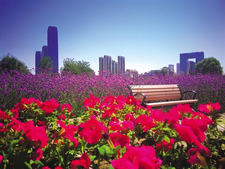 7月上旬至10月上旬的蘭州,綠意盎然,黃河邊涼風習習,行走于南濱河路黃河健身步道,便可以看到醉蝶花、百日草、松果菊、波斯菊、菖蒲等花卉組合點綴在綠樹成蔭的黃河風情線上,它們或星星點點,或連接成片,為美麗的黃河風情線增添了一份靚麗。