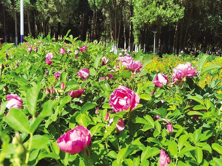如果您在5月上旬至10月上旬來蘭州,最容易看到的當屬玫瑰花了,它的花朵嬌艷欲滴,不但耐看,還可以吃。四季玫瑰又稱紫枝玫瑰,夏季賞花,秋季看果,冬春觀枝,具有四季觀賞價值。沿著南北濱河路行走,馬路兩旁便可看到許多或盛放或含苞的玫瑰花;小西湖公園內,大片的四季玫瑰如今開得正旺;在北濱河路黃河河道健身步道,多色的玫瑰錯落有致,散發(fā)出甜蜜的醉人芬芳;再往山上走,位于羅九公路上的牡丹園內,也有不少玫瑰花正在盛開。