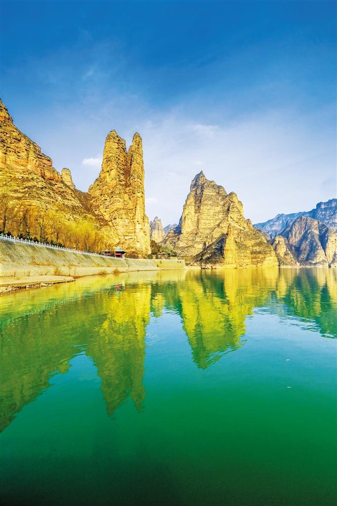 炳靈寺石窟前的姊妹峰。本版照片均為首席記者 田蹊 攝