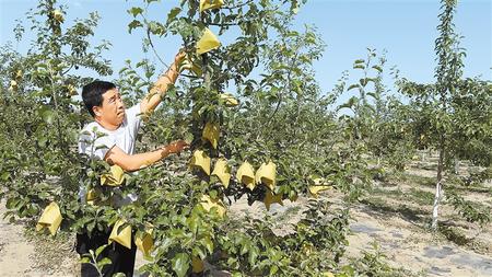 下午時(shí)分,在朱店鎮(zhèn)南部山區(qū)萬畝產(chǎn)業(yè)示范基地里,果農(nóng)朱讀強(qiáng)正在自己的果園里忙碌著。他身后的15畝梯田果園里,蘋果樹已經(jīng)套袋結(jié)束。