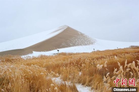 2月17日,甘肅敦煌迎來降雪天氣,大漠山川被皚皚白雪覆蓋,像一幅幅清秀淡雅的水墨山水畫。敦煌著名風景區(qū)——鳴沙山月牙泉景區(qū)吸引游客前來觀賞難得一見的大漠雪景。這次降雪的特點是降雪量大,但氣溫并不是很低,游人盡情體驗“沙雪交融”的絲路盛景。(王斌銀 張曉亮)