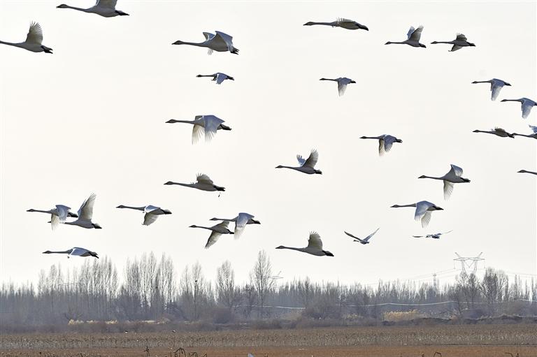 中國甘肅網(wǎng)3月24日訊 據(jù)蘭州晚報報道(通訊員 鄭耀德 記者 雒煥素 攝)3月22日,在張掖黑河濕地國家級自然保護(hù)區(qū)臨澤縣鮑家湖濕地內(nèi),大群的野生大天鵝、赤麻鴨、綠頭鴨、灰雁等北遷候鳥嬉戲覓食,黑河濕地迎來了春季候鳥遷徙高峰期。