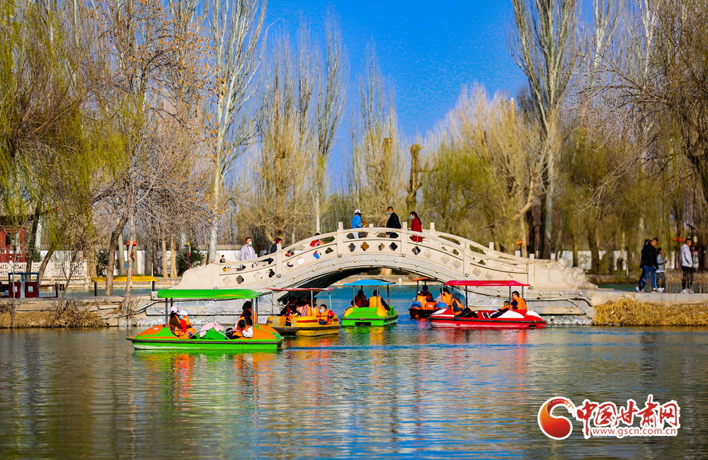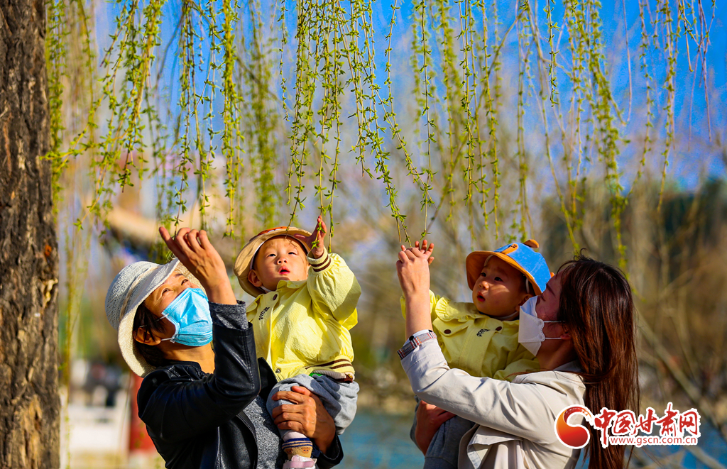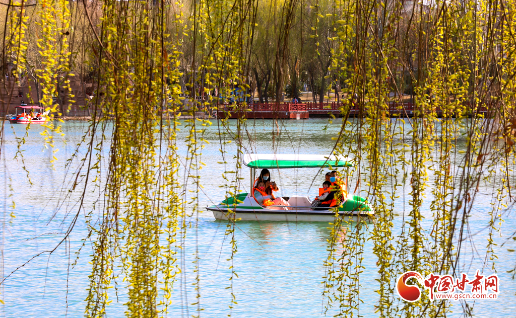 4月5日,甘肅省酒泉市天氣晴朗,春光明媚,不少市民游客利用晴好天氣,來到酒泉公園踏春游玩,親近自然,放松身心,享受美好春光。