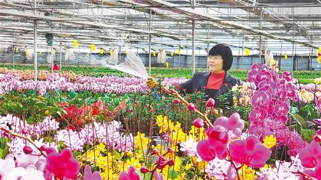 臨洮縣三易花卉種植基地的技術(shù)人員正在給蝴蝶蘭澆水。新甘肅·甘肅日報通訊員 邊國鵬