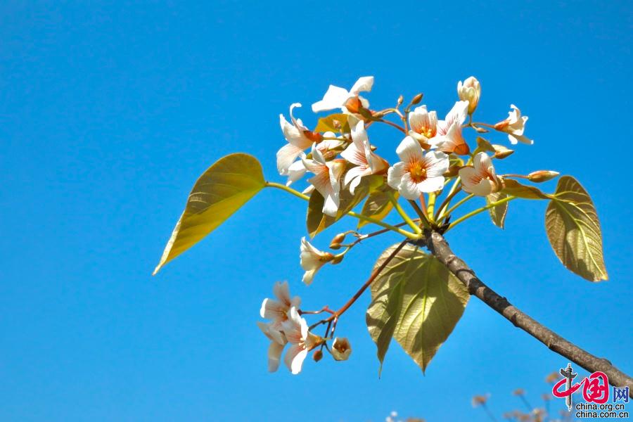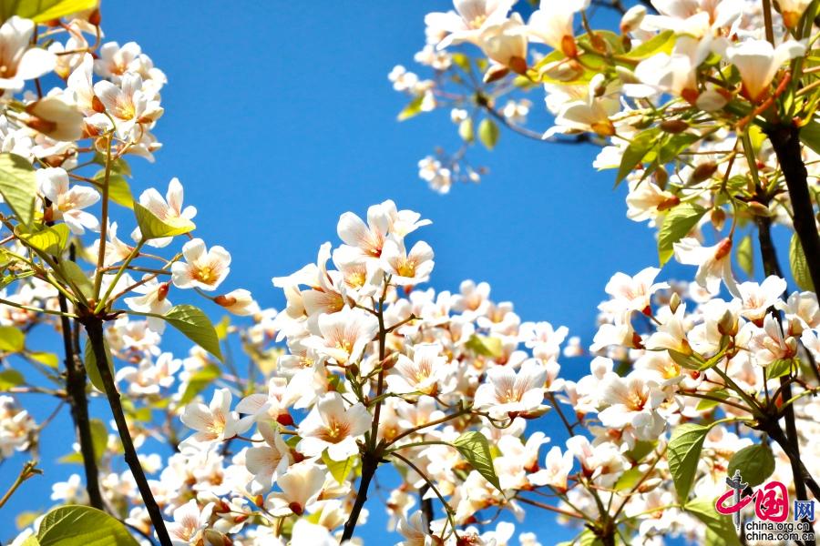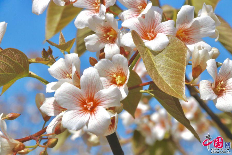 據(jù)了解,油桐的花期較短,僅半個月左右。每年四月中旬,便能看到密集成林的油桐白花簇簇,整個山頭全是花朵的世界。隨著陣陣清風(fēng),空中飄起雪白的花雨,藍(lán)天白云,落英繽紛,清香馥郁,飄逸山外。