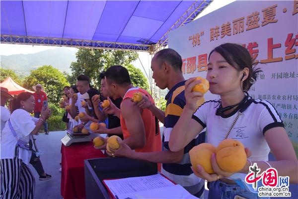 活動中,還開展了 “最大桃王”“最甜桃后”評比和吃黃桃比賽,將現(xiàn)場氣氛推向了高潮?;顒幼詈螅€開啟了2022年新邵縣“新邵資味”農(nóng)特產(chǎn)品短視頻暨直播大賽。