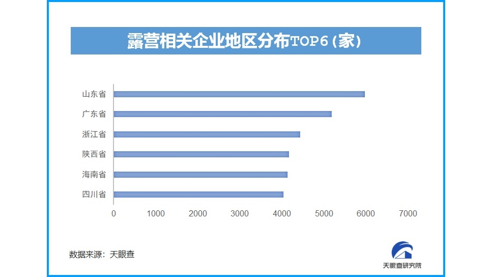 人們被疫情壓抑了的旅游需求,在露營(yíng)市場(chǎng)得到釋放。根據(jù)天眼查大數(shù)據(jù),我國(guó)目前已有超過(guò)6.6萬(wàn)家與露營(yíng)相關(guān)的企業(yè),近3年露營(yíng)相關(guān)企業(yè)注冊(cè)總量增長(zhǎng)迅猛。在地域分布上,山東的露營(yíng)相關(guān)企業(yè)數(shù)量最多,近6000家。廣東、浙江、陜西、海南、四川等緊隨其后,均超過(guò)4000家。