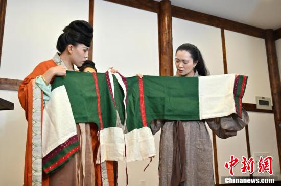 南寧傳統(tǒng)服飾復原團隊展示全套魏晉時期漢服飾造型。