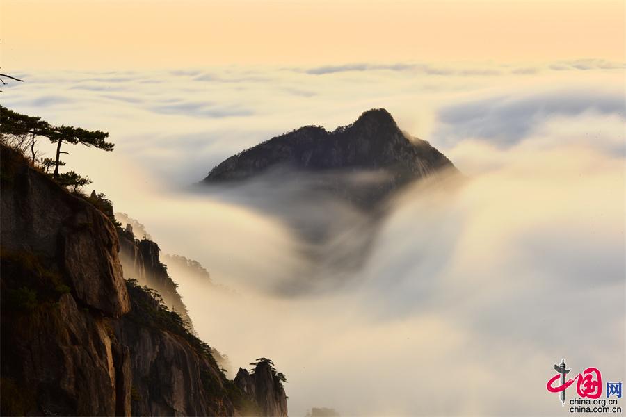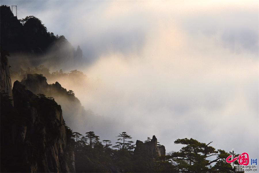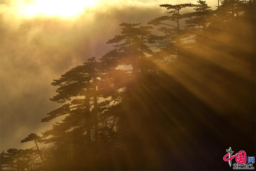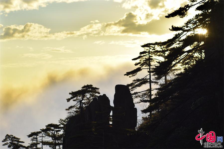 在黃山風景區(qū)的始信峰,群峰中時而云海翻騰,時而霧靄朦朧,時而艷陽高照,還出現了佛光奇觀,勾勒出一幅幅黃山獨有的勝景。