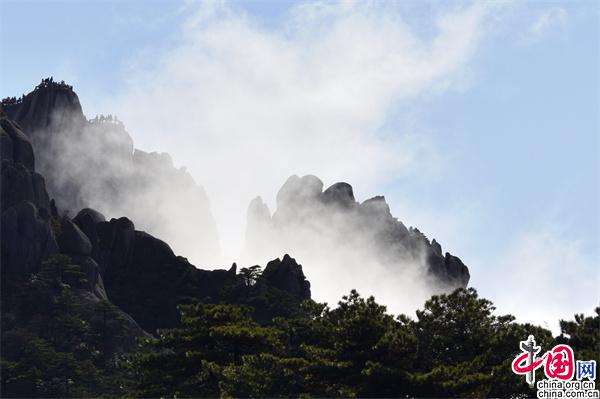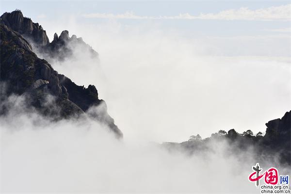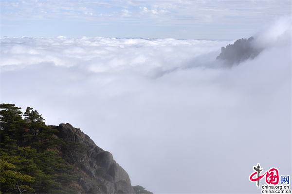 11月23日下午,安徽黃山風(fēng)景區(qū)雨后放晴,山巒之中,云海彌漫,縹緲無形,奇松、怪石和群峰在的云海間時隱時現(xiàn),亦夢亦幻。