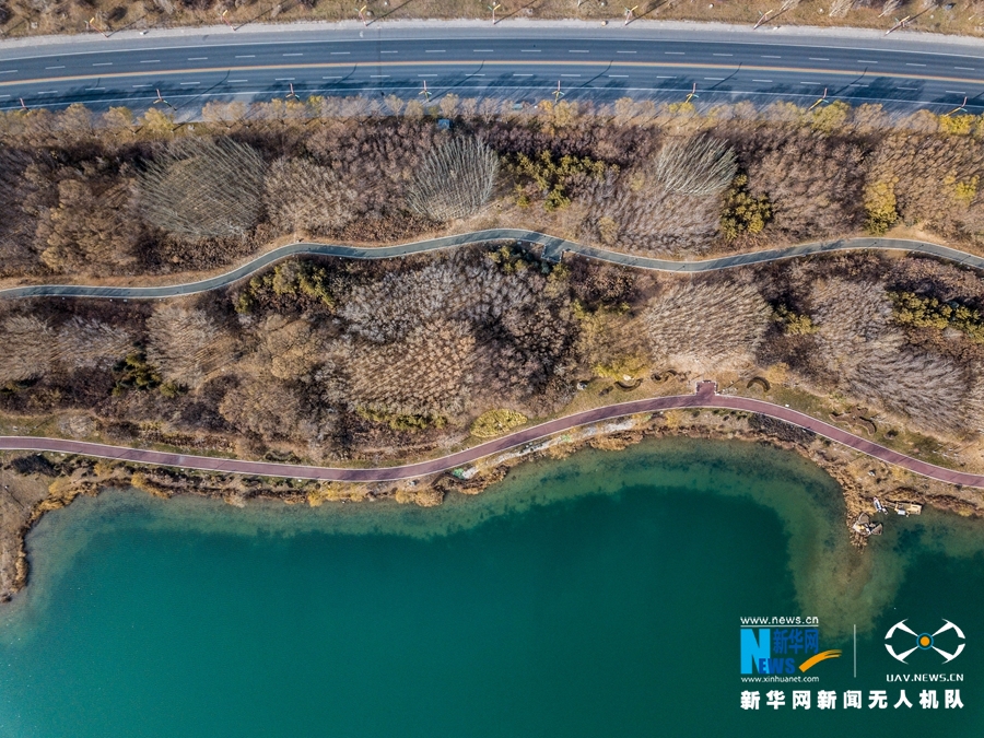 這是11月21日拍攝的甘肅省張掖市甘州區(qū)蘆水灣風(fēng)光(無(wú)人機(jī)拍攝)。新華網(wǎng)發(fā) (成學(xué)磊 攝)